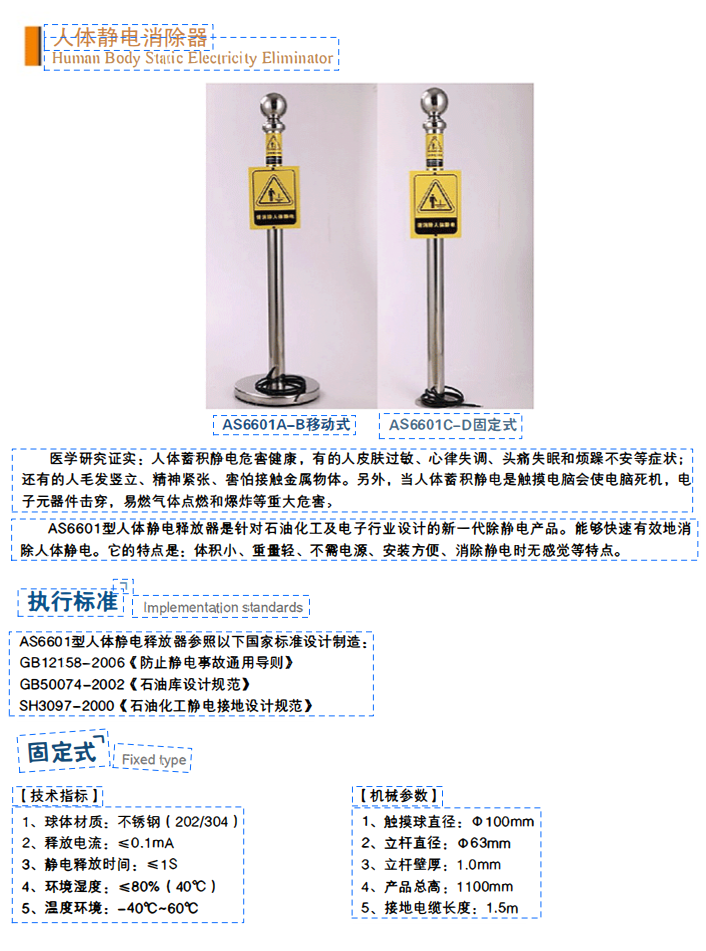 AS6601型人體靜電釋放器是針對石油化工及電子行業(yè)設(shè)計(jì)的新一代除靜電產(chǎn)品。